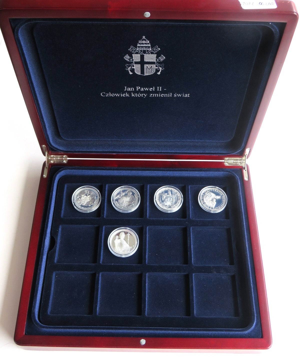 Medale Jan Paweł II, 5 sztuk i dedykowana kaseta